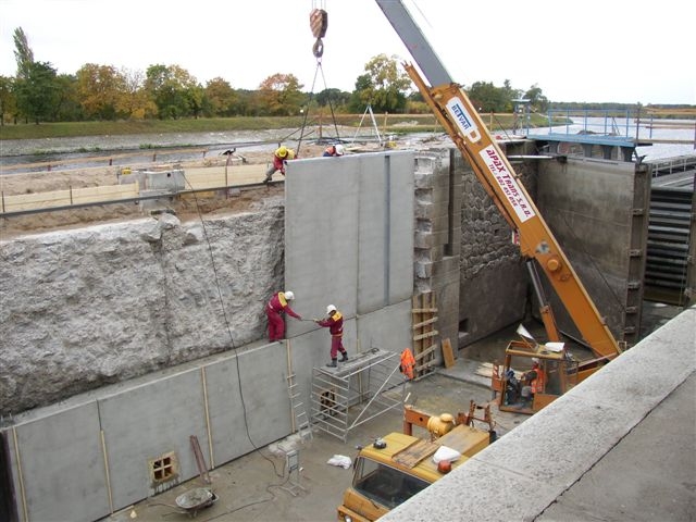 Pro rekonstrukci zdí plavební komory byl zvolen již osvědčený způsob řešení, který byl použit na komorách v Brandýse nad Labem, Kolíně, Klavarech, Poděbradech, Lysé nad Labem a Čelákovicích.